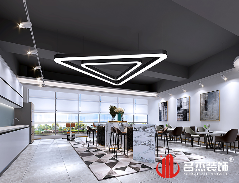 本案例設計客戶是佛山市蜜絲菲爾服飾有限公司,是主營服裝直播行業的。設計師經過跟客戶的詳細溝通,同時對服裝服飾行業的了解,再結合該場地的機構,天花吊頂的造型以各種不規則的版塊來進行設計