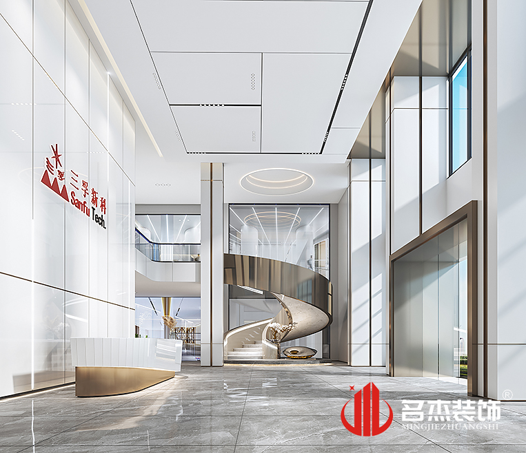 整體辦公室裝修設(shè)計(jì)當(dāng)中加入了很多不同的造型,讓空間變得更加有設(shè)計(jì)感。展廳區(qū)域則使用弧形吊頂造型,讓流動(dòng)路線跟著弧線走,起著一個(gè)引導(dǎo)的作用,有著更深的沉浸感。螺旋式樓梯因其流線造型美觀,且有著典雅的氣息,深受客戶的喜愛。休閑區(qū)域則使用較為傳統(tǒng)的樣式,綠植,鵝卵石鋪墊的過道,空間中無處不透露著中式典雅的風(fēng)格。