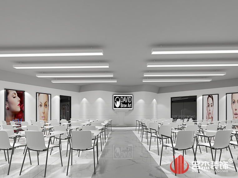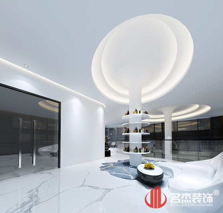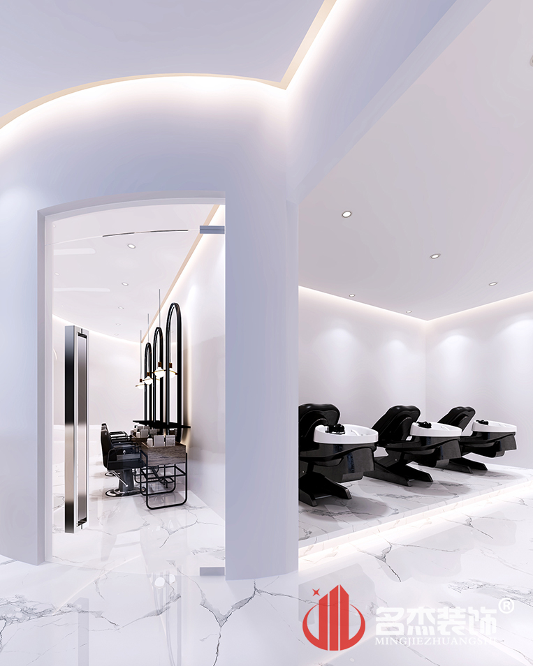 本案例是美容美發店,因此采用整體白色作為主色調,一些地方使用圓弧形來解決整體過于單調的問題,裝飾方面利用風格強烈的掛畫來點綴整個空間,使簡約的空間,增添時尚感。