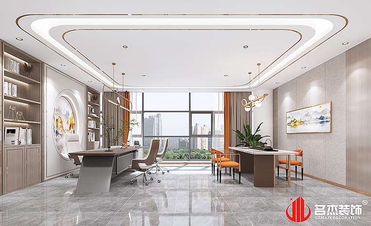 在整個的辦公室裝修設計當中,主要的空間采用土豪金和活力橙作為空間的點綴色,讓空間的設計感層層遞進。同時時尚流行的風格是非常符合化妝品這個行業的,能夠重點突出產品的特點以及特色,使得產品變得更加吸引人。