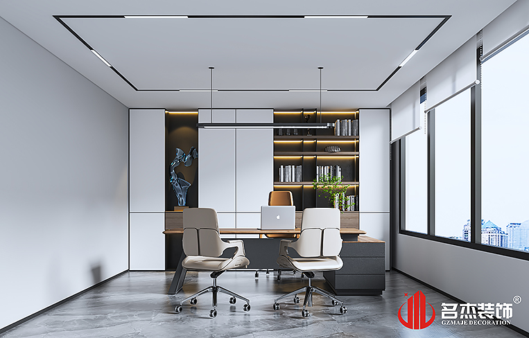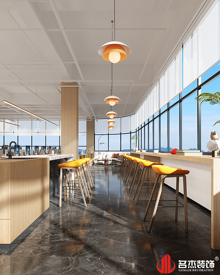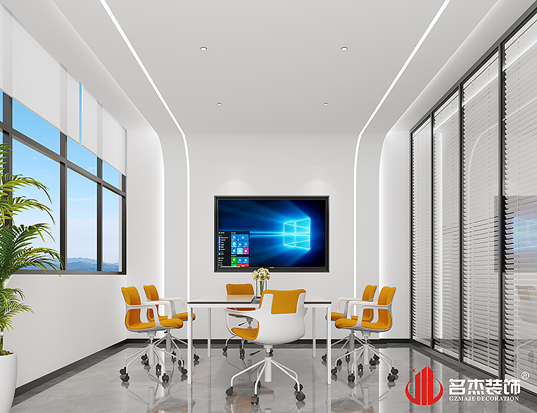 設計團隊想要打造出一個時尚且具有企業辨識度的辦公裝修設計空間,于是在裝修設計的過程中,加入不同的設計元素,融入到時尚簡約的風格中,變成一個特別有氛圍感的新型辦公裝修設計空間。部分區域使用土豪金元素來提升空間的含金量,讓空間有了一種輕奢的氛圍感。大會議室的吊頂使用類似中式屋頂的手法,讓大會議室增添了不少沉穩感。#廣州辦公室裝修#
