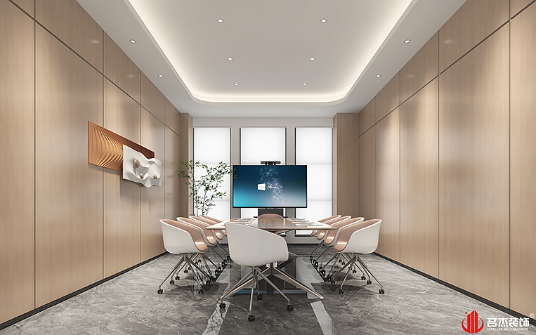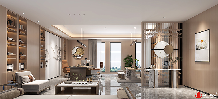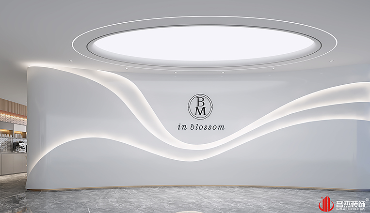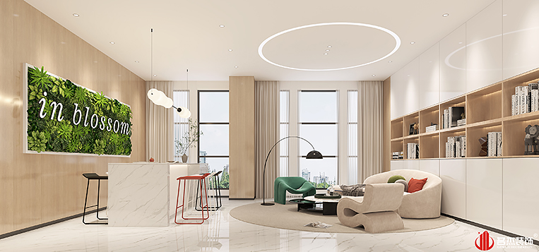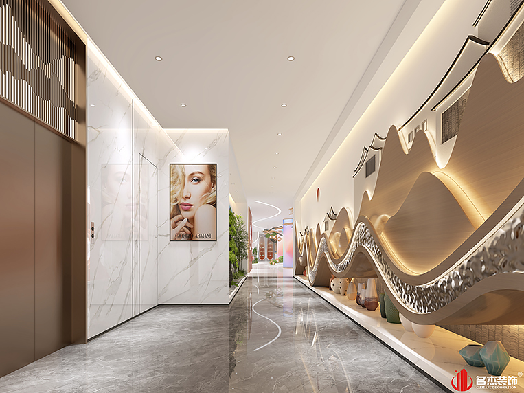 辦公裝修設計空間的主打風格是時尚簡約風格,但是設計團隊從化妝品行業(yè)中汲取設計靈感,同時加入一些線條的元素,堆疊出一種不同往常的時尚簡約風格。前臺區(qū)域則是使用簡單的線條,搭配圓弧的天花吊頂,天圓地方的設計概念,簡約而不簡單。而在電梯間這個地方,利用水紋不銹鋼的材料,結合弧線元素,具象化了中國龍這個設計元素。太陽,中式房屋,中國龍,寓意著江西瑞彩化妝品公司能夠龍騰四海。#廣州辦公室裝修#