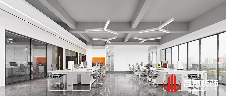 整體設計中采用的是簡約時尚風和工業風混搭,加以不同形狀的燈具來作為整體設計的點綴元素,讓整個空間變得更加時尚。在各個經理室中加入原木色來讓空間變得沉穩,盡顯端莊大氣。