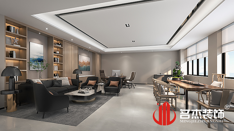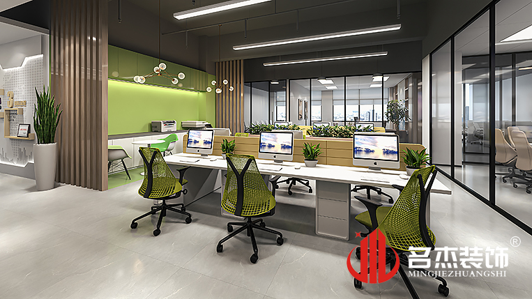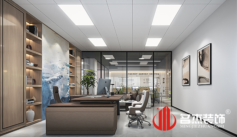 整體使用原木色調(diào)的材料來奠定現(xiàn)代簡約的風(fēng)格,在辦公區(qū)域使用綠色作為點綴色,讓自然的元素加入到整體辦公室裝修設(shè)計當(dāng)中,從而引申出一種親近自然的氛圍。總經(jīng)理室里面加入茶室和接待的功能,在接待重要客戶的時候起到一個非常不錯的效果。