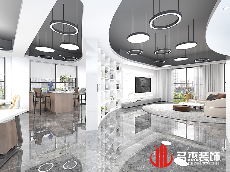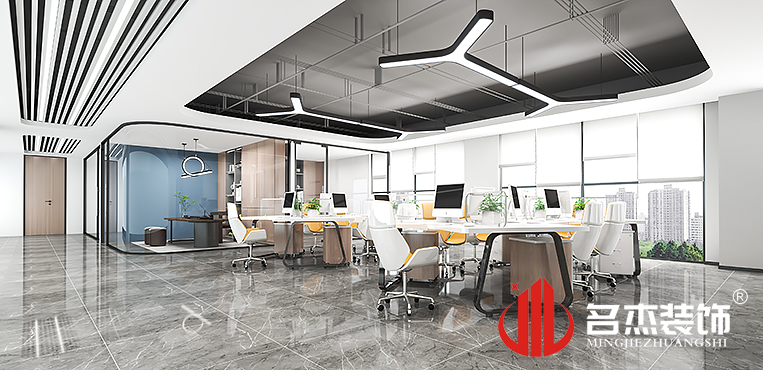 通過開放式的布局來提升空間的層次感,利用裝飾的點綴色來凸顯空間設計的層次感。同時使用簡易的吊頂造型,配以有設計感的燈飾,空間的設計感就油然而生。使用通透的玻璃隔墻來增加辦公室裝修設計區(qū)域的設計感,同時也能讓整體的視覺更加廣闊。