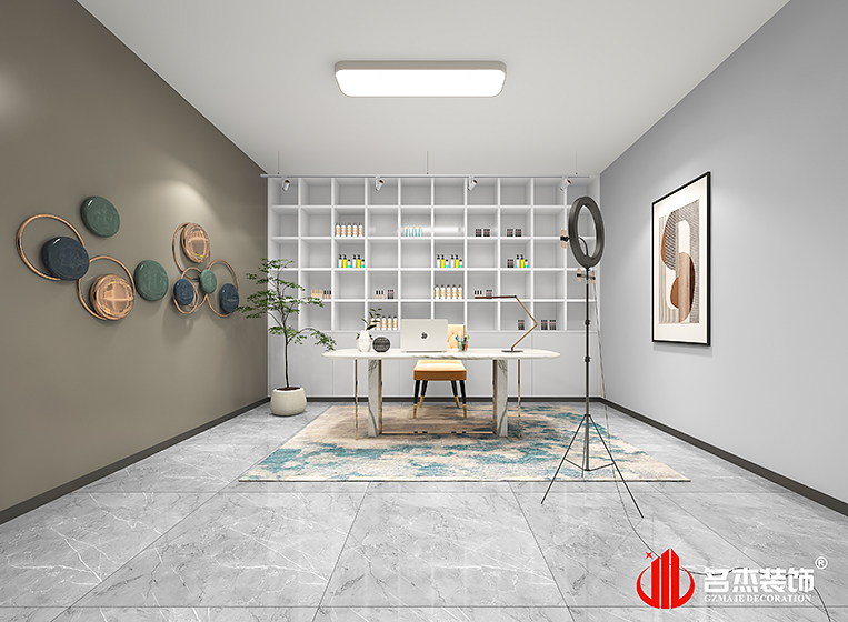 這次美業紋飾案例中使用的是時下流行的潮流元素,結合該行業是接觸時尚前端的行業,也是一個能夠突出美的行業,對此設計團隊使用莫蘭迪色系來作為展廳空間的主色調,強調時尚元素的同時,還能夠讓空間增加更多的設計感。利用吊飾吊燈來作為空間的點睛之筆,空間感強烈的同時,還能夠讓空間的層次感更加突出。