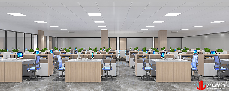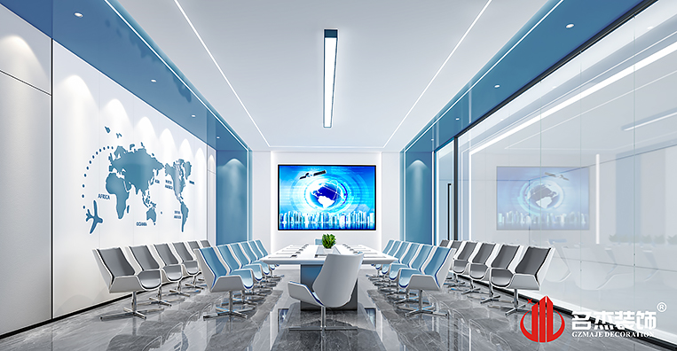 辦公室裝修設計空間在設計上面是采用的是科技風格為主的元素,加入科技藍的設計元素,作為空間的點綴元素,同時也能夠增加整體的科技感。對于造型的應用也是能夠很容易看出來設計團隊的用心程度,利用不同的造型來搭配出不一樣的設計層次感。