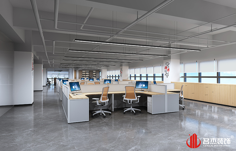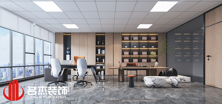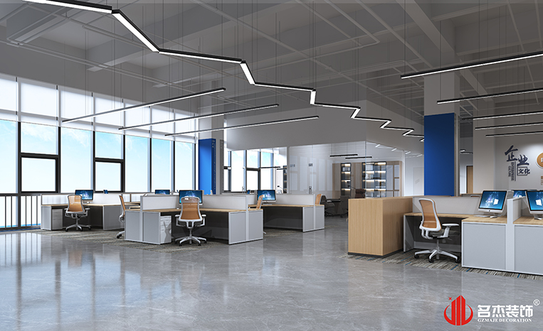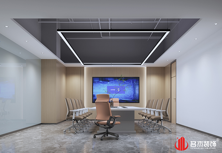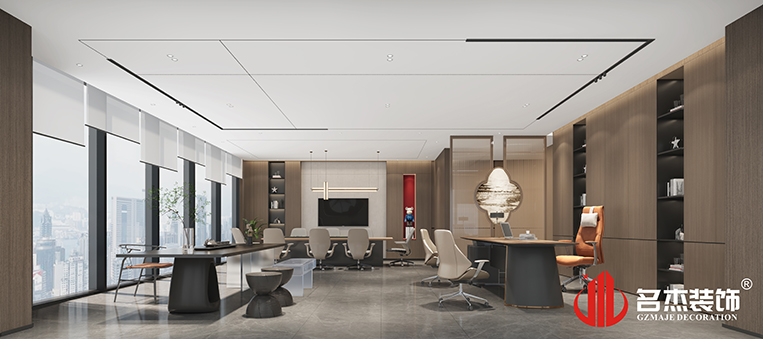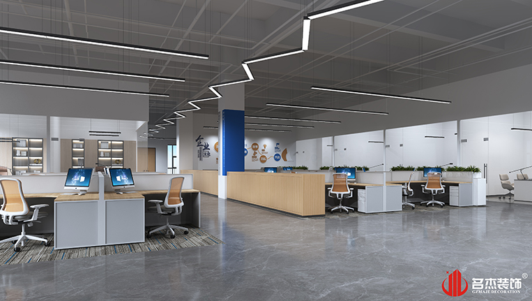 前臺區(qū)域使用弧形元素搭配藍色科技感的燈帶來打造專屬的科技感,這兩個元素搭配可以創(chuàng)造更多的可能性,再加上圓形吊頂,天花燈膜,可以讓辦公裝修設(shè)計空間的科技感更上一層樓。開放辦公區(qū)域則是選擇使用工業(yè)風(fēng)來作為主打的風(fēng)格,突出一個干練高效。而在經(jīng)理室和總經(jīng)理室采用的是簡約沉穩(wěn)的風(fēng)格來打造,配合時尚的家具,搭配出不一樣的效果。