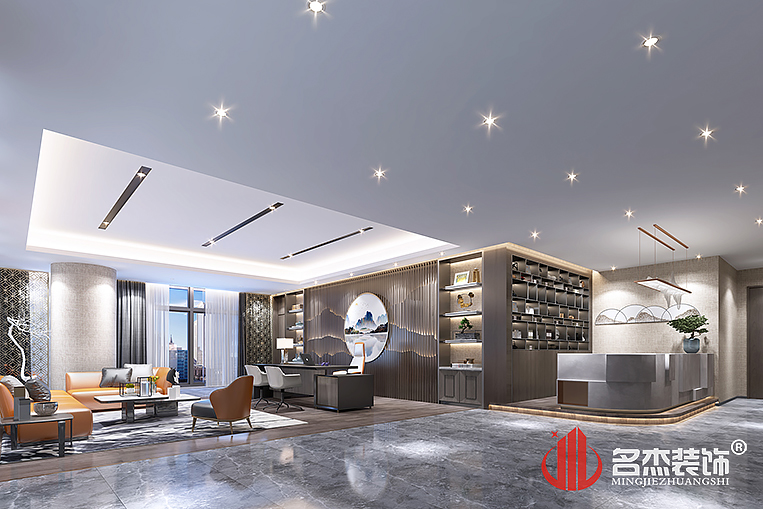 考慮到企業是為客戶提供專業的咨詢服務,整體設計運用了藍色燈帶來襯托出滿滿的科技感,以及圓弧形元素能夠讓整個辦公室裝修設計空間表現力更強。運用圓形穹頂使得整個培訓室看起來更加的大氣。