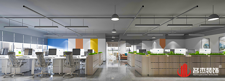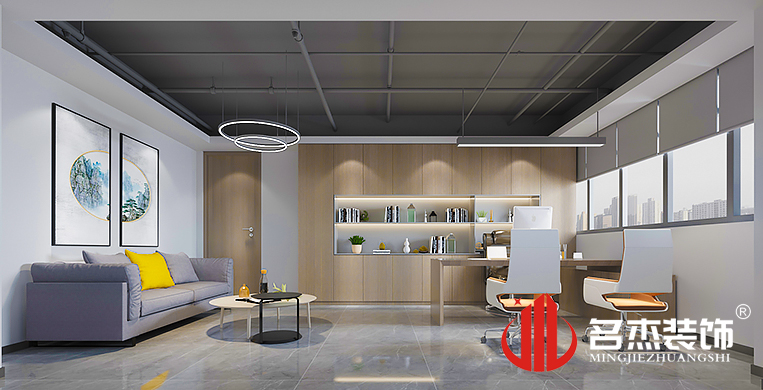 整體是采用黑白灰來作為主設(shè)計基調(diào),同時通過加入紅藍黃三種顏色來增添空間的設(shè)計感。前臺位置運用弧形元素以及加入不規(guī)則的天花造型,加以圓形的燈光,一下子空間的時尚感就出來了。多個地方也加入不同的軟裝飾來使空間變得時尚簡約大氣。
