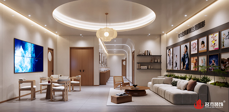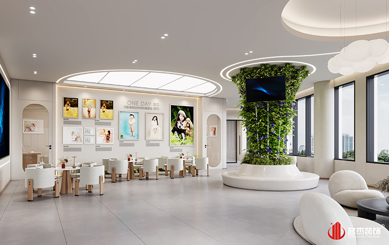 設計團隊在前臺區域使用比以往更多的圓弧形元素來作為辦公室裝修設計空間的主打設計要素,來避免孩子們碰傷的可能性,這樣的做法也是能夠讓空間的設計感更加強烈。家具的選擇上面也是選擇較為百搭的白色和原木色作為主要方向,呼應空間的同時,還能夠增加空間的設計層次感。而其他區域則是選擇較為常規的做法,通過對材質的選擇,打造出不同以往的設計風格。整體空間給人的感覺就是舒適,簡約而不簡單,同時也能夠符合兒童攝影的定位。
