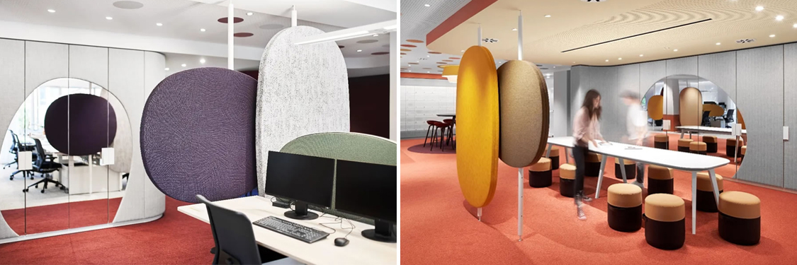 在設計當中,用濃烈的色彩來構建空間元素,可靈活變化的辦公家具、柔和的材料質地和形態、有機而非幾何的線條等等,就像每一個獨一無二的個體,沒有完美,只有個性。樂觀的生活態度滲透在空間的各個角落,特殊即常規,身心愉悅的氣氛無處不在。每個空間都在訴說自己的故事,每個環境都有自己的語言。